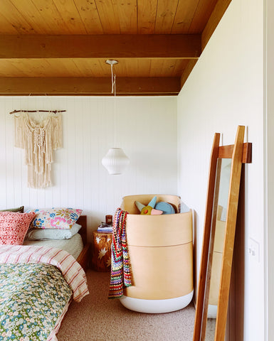 Our wall hangings are particularly perfect for a great parent and bub space - once this baby is born (and we finally know the gender) I’ll be popping up either the Luella or Rari Wall Hanging above the cot. I’ve also got my favourite baby cot sheet on – the Bumbi Cot Sheet – on the your Ubabub Pod Cot, and tied it back with a mix of Sage x Clare cushions that are for the young and old.
